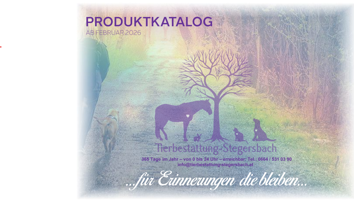 mehr Infos...Jeder Wegbegleiter ist einzigartig genauso, wie seine Besitzer. Somit sind auch die Bedürfnisse, nach dem Gang über die Regenbogenbrücke unterschiedlich. Wir stehen Ihnen in allen Belangen unterstützend zur Seite.